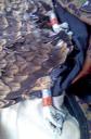 Старший из двух птенцов выводка. Взята проба перьевой трубки - пробирка № 84. Доп. измерения: цевка по Лене 68.3 мм. диаметр цевки 7.4 х 6.7 мм. коготь: задн. 18.5 мм. средний 15.5 мм. внутр. 18.5 мм.