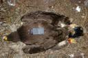 Хакас - один из двух птенцов выводка. Взята проба перьевой трубки - пробирка № 69. Надет трекер № 176. Доп. измерения: цевка по Лене 110.2 мм. диаметр цевки 11.2 х 11.7 мм. коготь: задн. 29.1 мм. средний 22.8 мм. внутр. 27.9 мм.