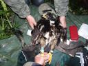 Единственный птенец в гнезде.Толщина цевки 11.5х13 мм. Задний коготь - 30.0 мм. Внутренний коготь - 29.5 мм. Средний коготь - 26.0 мм. Внешний коготь - 22.0 мм.Птица помечена трекером в рамках исследований по миграциям большого подорлика в подмосковье. Руководители - Мищенко А.Л. и Мельников В.Н.