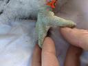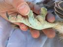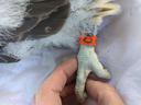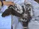Ширина цевки 8.5 х 8.6 мм / раскрывшийся 5 мах 86 мм / коготь задний 18.8 мм / внутренний 17.7 мм / средний 15.8 мм / наружный 15.0 мм / пробирка с пером № 114-2018. Атавизм - перья на лапах. На левой лапе между пальцами, на правой - на пальцах.