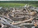 Естественное гнездо на болоте с 2-мя птенцами. Номер кольца другого птенца - E03