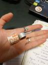 Кольца найдены без останков птицы. На земле под гнездовой платформой.