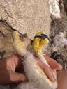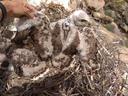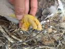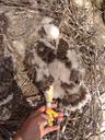 Птенец травмировал в гнезде правую лапу запутавшись в верёвке. Ширина цевки 7.5 х 8.9 мм / раскрывшийся 5 мах 67 мм / коготь задний 25.4 мм / внутренний 23.8 мм / средний 18.1 мм / наружный 15.3 мм.