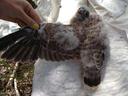 Зоб пустой. Ширина цевки 3.9 х 4.6 мм / раскрывшийся 5 мах 79.4 мм / коготь задний 10.5 мм / внутренний 10.1 мм / средний 9.2 мм / наружный 8.7 мм, пробирка с пером № Ш55.