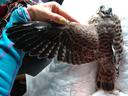 Зоб пустой. Ширина цевки 3.6 х 4.6 мм / раскрывшийся 5 мах 88 мм / коготь задний 10.0 мм / внутренний 10.0 мм / средний 9.1 мм / наружный 7.9 мм / пробирка с пером № Ш37.