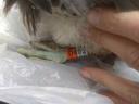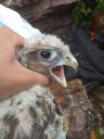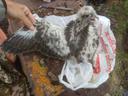 Младший в выводке 4 птенцов. Ширина цевки 7.0 х 6.8 мм / раскрывшийся 5 мах 64 мм / коготь задний 17.2 мм / внутренний 15.8 мм / средний 14.7 мм / наружный 13.2 мм / пробирка с пером № D402.