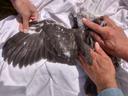 Имя Пикачу. Промеры взяты у птенца 8 июня в 35-дневном возрасте. Ширина цевки 7.5 х 7.2 мм / раскрывшийся 5 мах 93 мм / коготь задний 17.5 мм / внутренний 16.5 мм / средний 15.4 мм / наружный 13.3 мм / пробирка с пером № D206. Птенец сломал лапку 8 июня и был перевезён в Новосибирск собран - очень успешно зарос высажен 30 июня как указано в карточке.