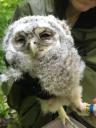 В этом году в большом дуплоне для длиннохвостых неясытей загнездилась серая неясыть. Птенцов в этом ящике обнаружили достаточно поздно - в начале июня. Здесь оказалось четыре крепких достаточно крупных птенца. Птенец с кольцом R-021 средний по размеру среди обнаруженных в гнезде. Точный возраст определить не удалось - поскольку пропустили время кладки