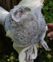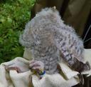 В этом году в большом дуплоне для длиннохвостых неясытей загнездилась серая неясыть. Птенцов в этом ящике обнаружили достаточно поздно - в начале июня. Здесь оказалось четыре крепких достаточно крупных птенца. Птенец с кольцом R-023 самый маленький из обнаруженных в этом ящике. Точный возраст определить не удалось - поскольку пропустили время кладки.