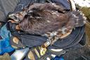 5-й мах 93.0 мм / ширина цевки 11.0 х 9.1 мм / коготь задний 26.6 мм / внутренний 25.5 мм / средний 18.6 мм / наружный 16.6 мм / пробирка с пером № H-149 - цевка оперена до пальцев.