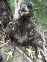 Младший птенец из двух. Птенец кольцевался 12 июня. а 26 июня был помечен трекером. 26 июня толщина цевки 17.0х18.0 мм. Задний коготь - 40.0 мм. Внутренний коготь - 38.0 мм. Средний коготь - 33.5 мм. Внешний коготь - 28.5 мм.