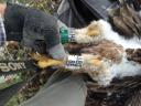 Младший птенец из двух. Толщина цевки 13.5х13.5 мм. Задний коготь - 30.0 мм. Внутренний коготь - 28.5 мм. Средний коготь - 23.0 мм. Внешний коготь - 18.5 мм.