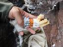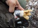 Один из 2 птенцов. Длина 5 маха 158 мм / ширина цевки 17.0 х 20.4 мм / коготь задний 47.2 мм / внутренний 42.3 мм / средний 32.2 мм / наружный 25.7 мм / пробирка с пером № B-392.