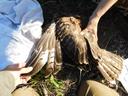 Светлый из выводка 3 птенцов. Ширина цевки 11.6 х 10.2 мм / коготь задний 26.8 мм / внутренний 25.7 мм / средний 22.0 мм / наружный 17.0 мм / пробирка с пером № CA-00.