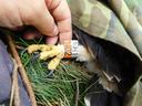 Старший самец. Длина 5 маха 90.0 мм / ширина цевки 7.9 х 8.6 мм / коготь задний 23.0 мм / внутренний 21.7 мм / средний 18.5 мм / наружный 16.3 мм / пробирка с пером № H-102.