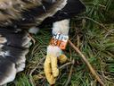 Младшая самка. Длина 5 маха 75.0 мм / ширина цевки 10.9 х 10.1 мм / коготь задний 25.0 мм / внутренний 23.3 мм / средний 19.3 мм / наружный 17.4 мм / пробирка с пером № H-103.