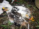 Младший из двух птенцов. Длина 5 маха 76.0 мм / ширина цевки 14.1 х 13.0 мм / коготь задний 30.5 мм / внутренний 30.5 мм / средний 24.9 мм / наружный 20.1 мм / пробирка с пером № C-982.