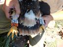 Джирик - младший самец из двух птенцов. Длина 5 маха 105.0 мм / ширина цевки 11.9 х 12.4 мм / коготь задний 30.0 мм / внутренний 28.9 мм / средний 24.1 мм / наружный 20.4 мм / вес 2485 г. пробирка с пером № C-932.