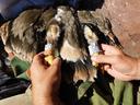 Ирма - стршая самка из двух птенцов. Длина 5 маха 145.0 мм / ширина цевки 14.5 х 15.2 мм / коготь задний 34.1 мм / внутренний 31.8 мм / средний 26.6 мм / наружный 21.4 мм / вес 3130 г./ пробирка с пером № C-933.