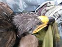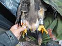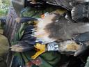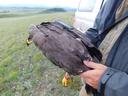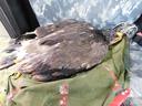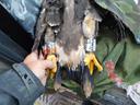 Шира - старшая самка из трех птенцов. Длина 5 маха 185.0 мм / ширина цевки 14.4 х 13.5 мм / коготь задний 35.1 мм / внутренний 34.8 мм / средний 28.4 мм / наружный 22.2 мм / вес 3215 г./ пробирка с пером № C-942.