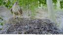 Второй год гнездования этой самки. В этот раз они с самцом вырастили одного родного и одного приёмного, а ещё двух его родных убил тетеревятник в гнезде.