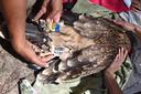 Ширина цевки 15.8 х 15.4 мм; Длина заднего когтя 38.8 мм; Длина внутреннего когтя 35.9 мм; Длина наружного когтя 25.5 мм; Длина среднего когтя 30.8 мм. Трекер передал последние данные 22.10.2022 с территории Афганистана (34.718837 67.465308). Возможно отключение сим-карты БилайнKZ, возможно гибель птицы.