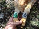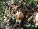 Старшая в выводке из двух птенцов. Толщина цевки 14,5х17,5 мм. Задний коготь - 35 мм, внутренний - 33,5 мм, средний - 26,5 мм, наружный - 21,5. Трекер был надет 19 июля при дополнительном посещении гнезда