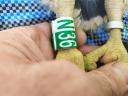 Один из трех птенцов. На правой лапе было алюминиевое несъемное кольцо, которое мы срезали