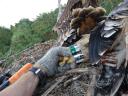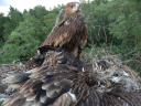 Средний птенец из трёх. Кольцо на левой лапе бракованное,цифры на нем перевернуты
