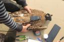 Птенцы были сняты электриками с гнезда, расположенного на опоре ЛЭП, гнездо было разрушено при плановом обслуживании ЛЭП. Птенцов доращивали в вольере в заповеднике на Сарыкуме.Перед выпуском были надеты трекеры. Данный самец один из двух в выводке.Его длина тела 75 см. Задний коготь - 34,5 мм, внутренний коготь - 32,5 мм, средний - 25,5 мм, наружный - 20,5 мм.В анкете указаны координаты гнезда, а не место выпуска птицы на Сарыкуме.