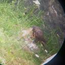 Темная морфа. Голова полностью коричневая. Усов, щек, бровей нет. Грудь темная, пестрин белых мало. Нет белого над клювом. Под клювом есть чуть белого. На затылке есть четыре неярких белых пятна (верхние четыре видно, когда птица наклоняет голову вперед. Два нижних видно очень хорошо.
