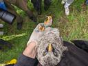 Кольцо подпилено, был номер CE-43. Окольцевали 3 слетков из 4.