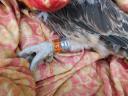 Имя Юся - нативный птенец помечен трекером. Ширина цевки 9.3 х 10.8 мм / коготь задний 20.4 мм / внутренний 18.3 мм / средний 16.5 мм / наружный 14.1 мм. Проба пера CA-31.