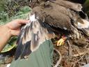Старший птенец из трех. Ширина цевки 14.3 х 13.2 мм / коготь задний 32.4 мм / внутренний 31.1 мм / средний 27.1 мм / наружный 22.0 мм. Проба пера C-992.