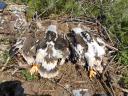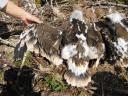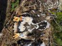 Старший птенец из двух - самка. Ширина цевки 15.6 х 14.7 мм / коготь задний 33.2 мм / внутренний 31.5 мм / средний 26.0 мм / наружный 21.2 мм. Проба пера B-404.